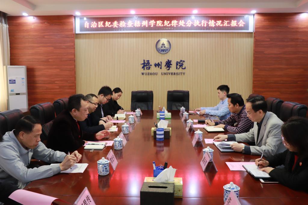 3月13日上午,自治区纪委监委纪律处分决定执行情况专项检查组第一组组长、自治区纪委监委案件审理室副主任刘钢一行6人到我校,对党的十八大以来(2013-2018年)我校办结案件的纪律处分决定执行情况进行专项检查。学校党委常委、纪委书记梁业华陪同检查。纪委办全体纪检干部参加了检查工作汇报会。