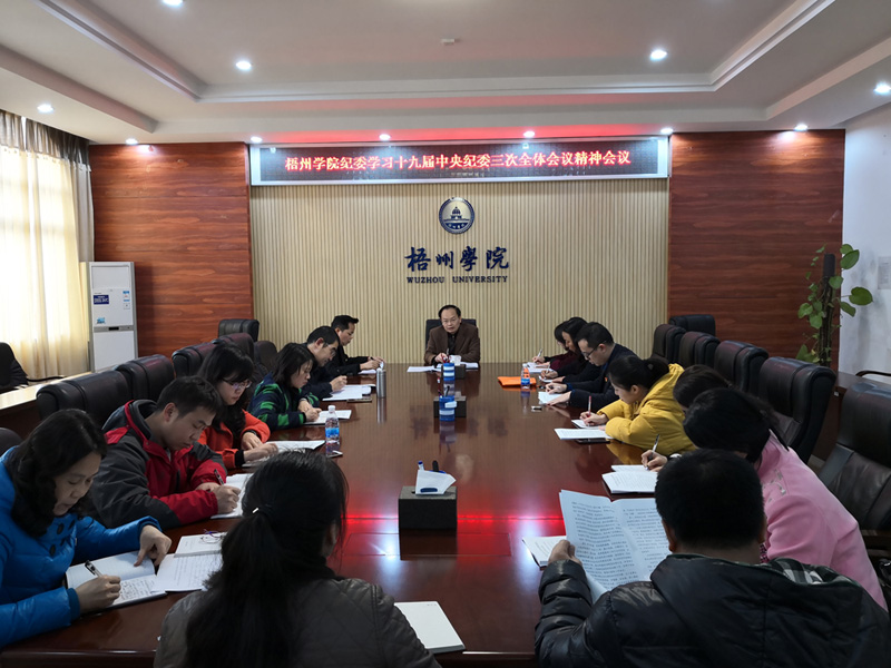 1月14日,学校纪委召开专题会议,传达学习十九届中央纪委三次全会精神。学校纪委委员,各二级党委(党总支、直属党支部)纪委书记、纪检委员,学校纪委办、监察室全体人员参加了会议。学校党委常委、纪委书记梁业华主持会议并讲话。