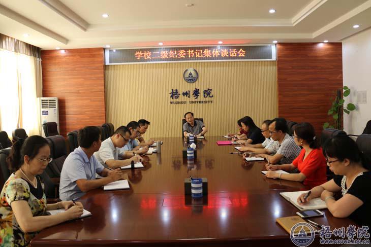 6月29日,我校纪委召开二级学院纪委书记集体谈话会,学校纪委班子全体成员参加会议。