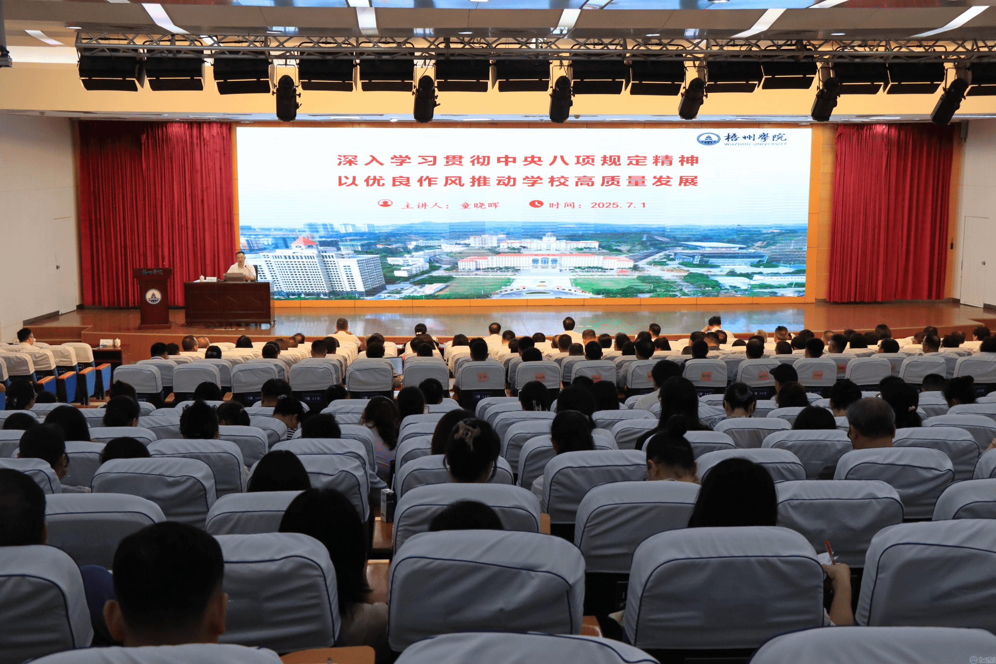 7月1日上午,学校在明理楼一楼学术报告厅举行深入贯彻中央八项规定精神学习教育交流会暨专题党课。学校领导童晓晖、麻新纯、梁业华、范生汝、莫晨宇、邓小林出席会议。全体教职工党员,离退休教职工党员代表参加会议。会议由校长麻新纯主持。