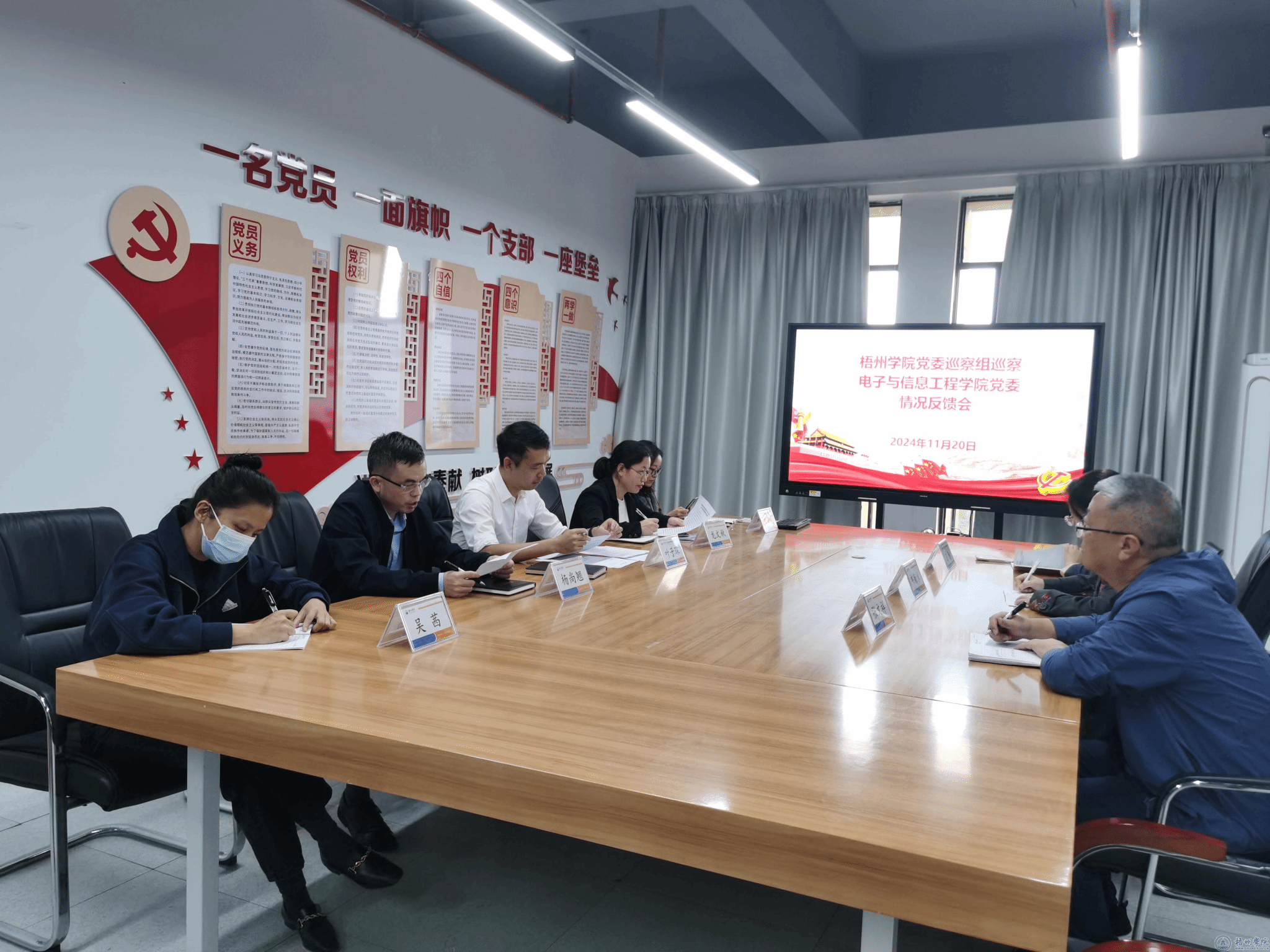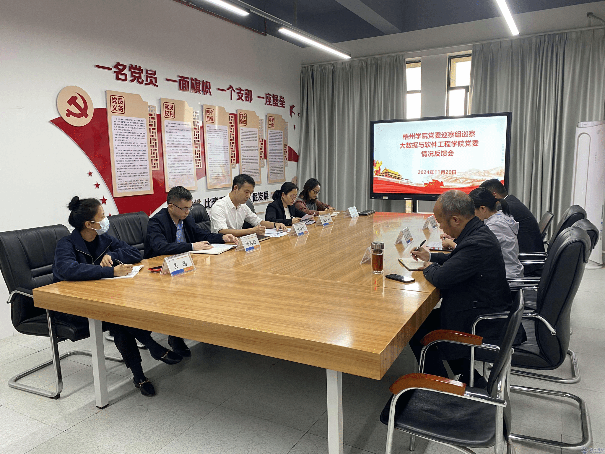 巡察组组长龙文秋在会上指出,自上一轮巡察来,大数据与软件工程学院党委和电子与信息工程学院党委始终坚持以习近平新时代中国特色社会主义思想以及党的十九大和十九届历次全会,党的二十大和党的二十届三中全会精神为指导,增强“四个意识”,坚定“四个自信”,做到“两个维护”,认真贯彻落实学校第三、第四次党代会精神,围绕立德树人根本任务,努力落实全面从严治党责任,在思想政治建设、基层党组织建设、学风教风和师德师风建设、党风廉政建设、人才培养、学科建设、教材体系建设等方面取得了一定的成效。经巡察和党员群众反映,巡察组发现了学院党委存在的一些突出问题,主要是:学习贯彻理论不够深入;学院服务地方经济、推进产学研协调创新有待进一步加强;学院育人作用发挥不充分,学风建设有待加强;维护校园安全稳定和防范化解重大风险方面存在薄弱环节;落实立德树人根本任务有待加强;落实全面从严治党主体责任力度不够;制度执行的规范性有待进一步提高;资产管理责任未严格落实到位;运用监督执纪“第一种形态”工作有待进一步规范;党组织建设和党员队伍建设存在薄弱环节;党管人才工作力度不够;党员教育管理监督不够到位。
